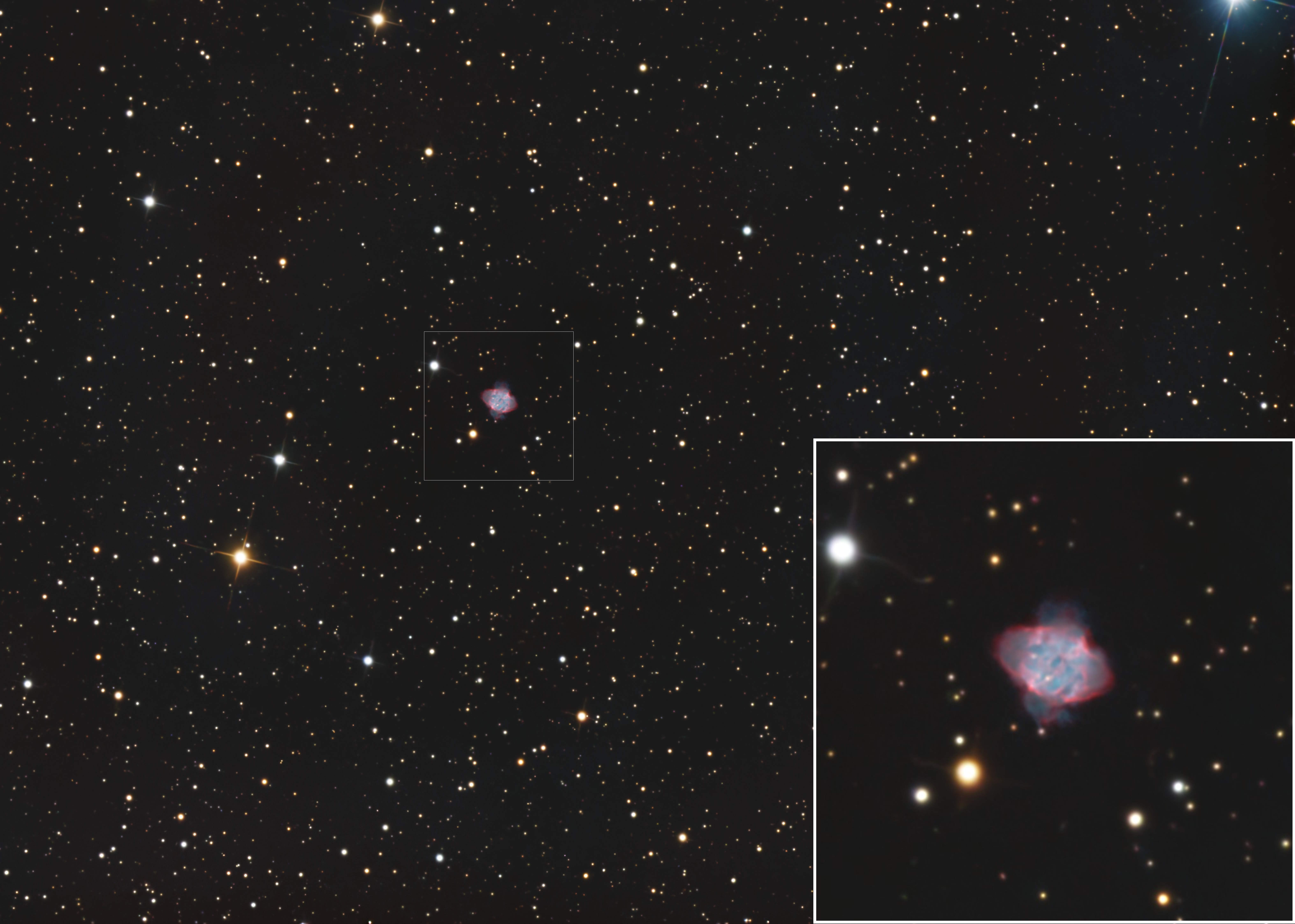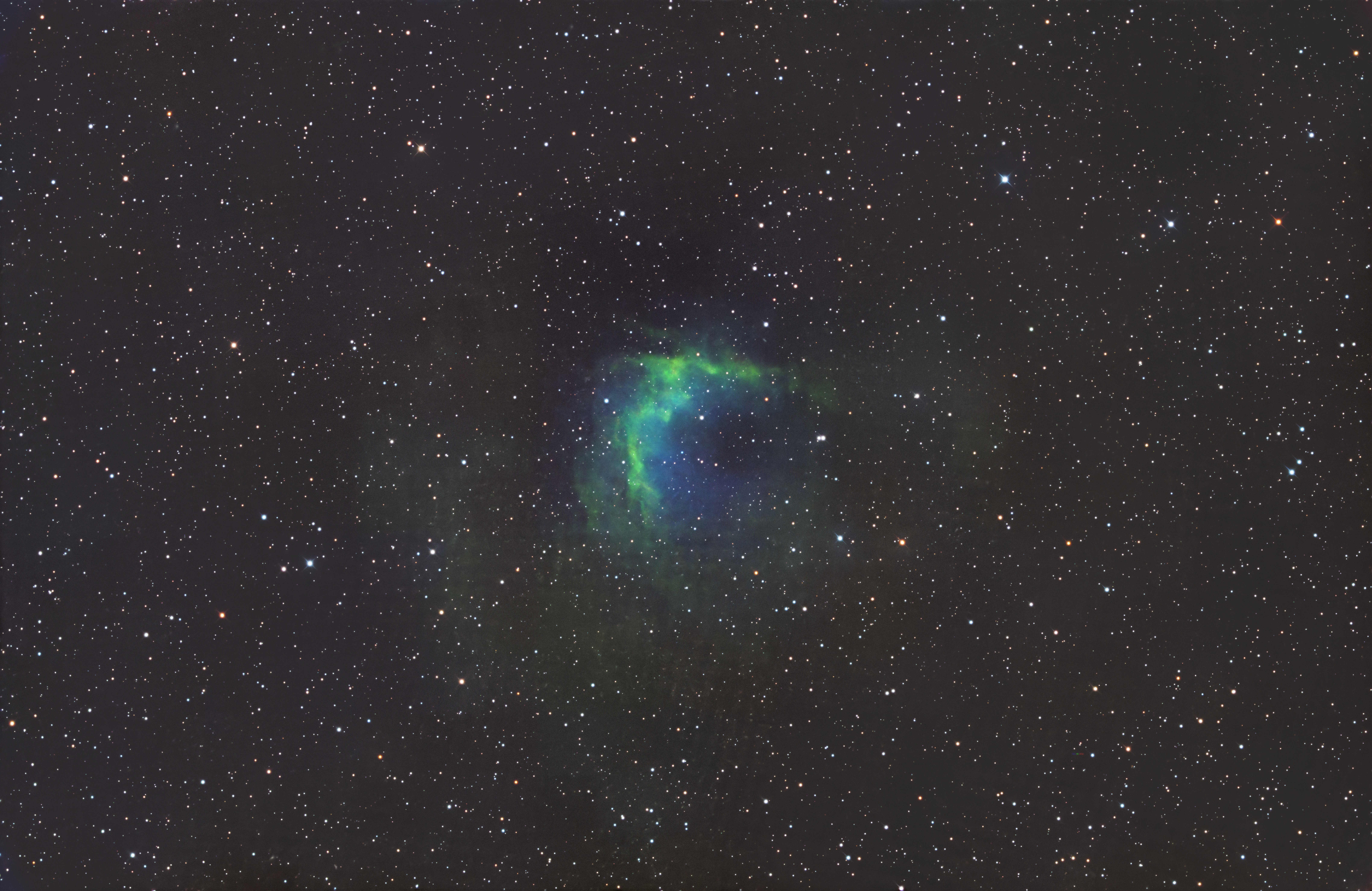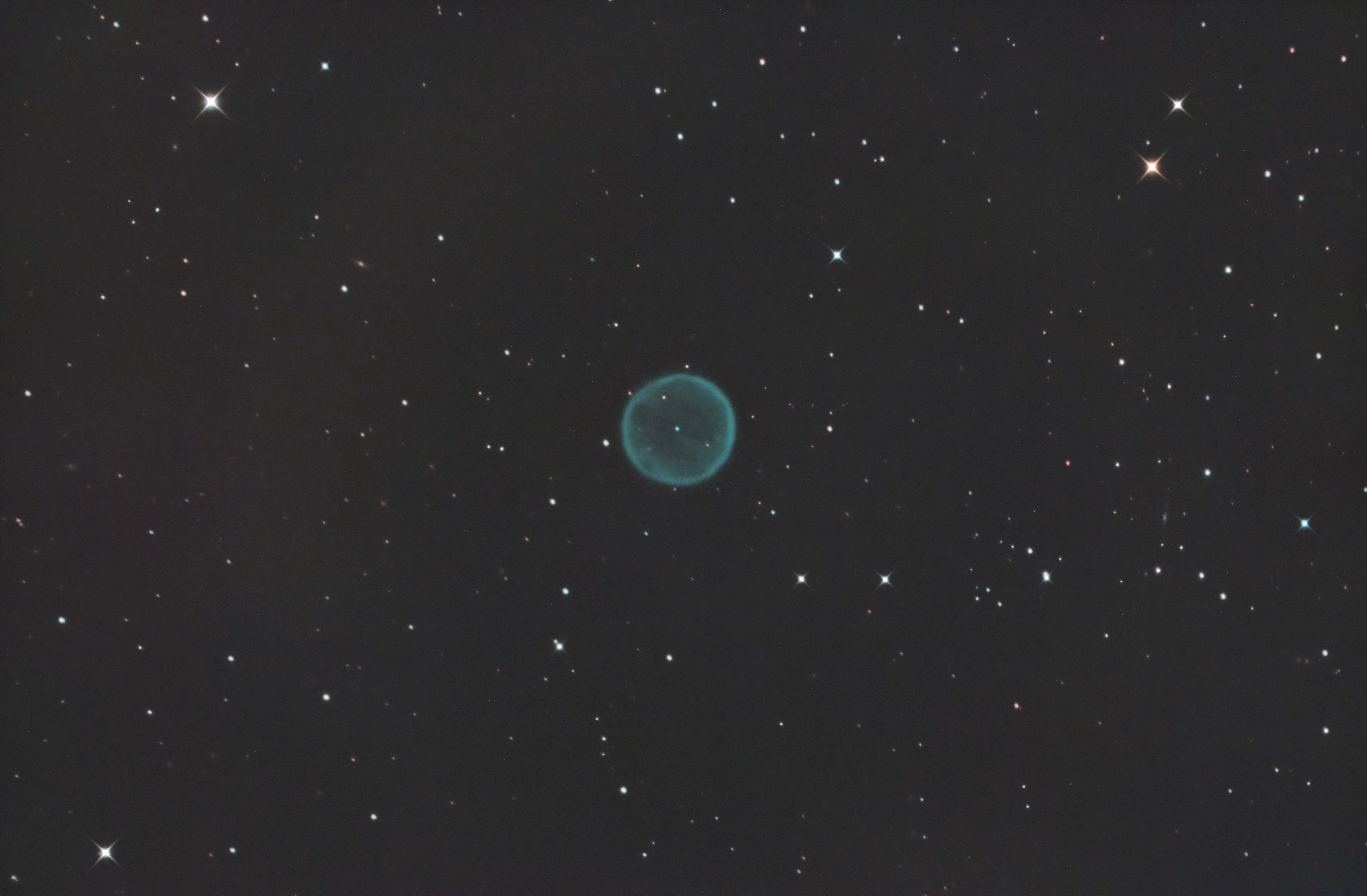 Viele Planetarische Nebel leuchten aufgrund des reichlich vorhandenen Sauerstoffs in grünlichblauem Licht der OIII-Emissionslinie, so dass diese auf entsprechende Schmalbandfilter sehr gut ansprechen.